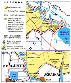 - ↑ a b c Cubreacov, Vlad (25 de novembro de 2009). «Tratat între Republica Moldova și Ucraina cu privire la frontiera de stat» (em romeno). Consultado em 5 de agosto de 2010. Arquivado do original em 14 de março de 2010