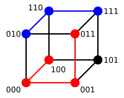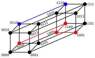Para strings binárias a e b, a distância de Hamming é igual ao número de uns em a XOR b. O espaço métrico das strings binárias de comprimento n, com a métrica de Hamming é conhecido como cubo de Hamming; ele é equivalente como espaço métrico ao conjunto das distâncias entre vértices em um grafo hipercubo. Também é possível interpretar uma string binária de comprimento n como um vetor em tratando cada símbolo da string como uma coordenada real; com essa imersão, as strings formam os vértices de um hipercubo de dimensão n, e a distância de Hamming entre as strings é equivalente à métrica do taxi entre os vértices.