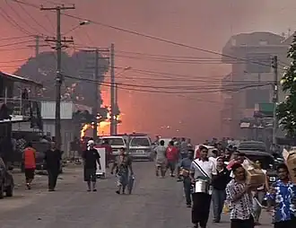 ![]() O início dos grandes incêndios devido aos confrontos de Nuku'alofa. | |