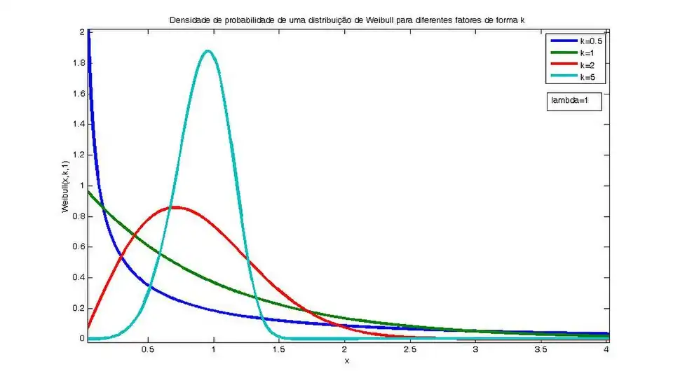 Uma variável aleatória x segue a distribuição de Weibull se sua função densidade de probabilidade é dada por[2]