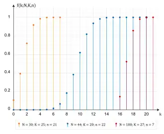 - ↑ a b Ahle, Thomas Dybdahl (8 de dezembro de 2015). «Another Tail of the Hypergeometric Distribution». ahlenotes. Consultado em 19 de julho de 2017