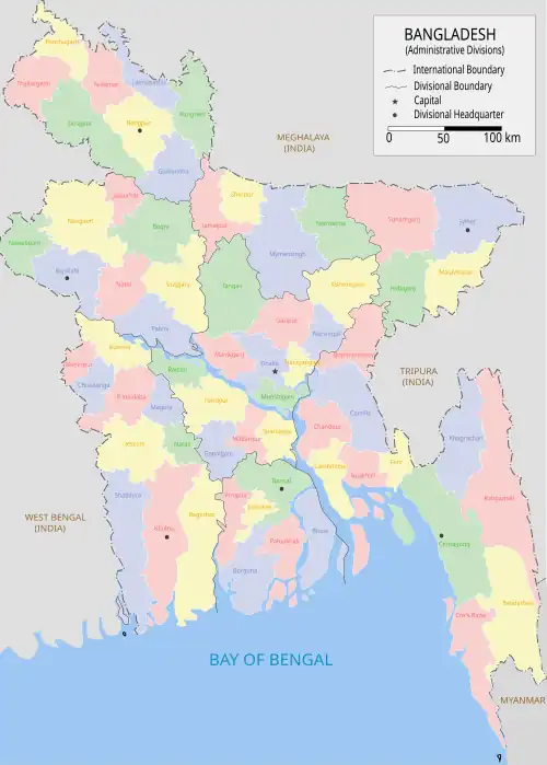 | Brahmanbaria (distrito) | ব্রাহ্মণবাড়ীয়া | Chatigão | 2808 | 1927 | 1457 |