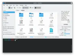 Dolphin é um gerenciador de arquivos gratuito e de código aberto, incluído no pacote de aplicativos do KDE, que contém aplicativos usados principalmente com a área de trabalho KDE Plasma 5. O Dolphin tornou-se o gerenciador de arquivos padrão dos ambientes de desktop baseados no KDE na quarta iteração, denominada KDE Software Compilation 4.[3] Ele também poderia ser opcionalmente instalado no K Desktop Environment 3. O Konqueror foi substituído como o gerenciador de arquivos padrão do KDE SC 4, mas ainda é o navegador web padrão e pode ser usado como um gerenciador de arquivos alternativo para usuários avançados.