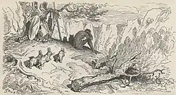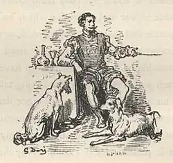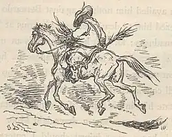 - ↑ Miguel de Cervantes, The History of Don Quixote, ilustrador: Gustave Doré, tradução para o inglês de John Ormsby, 1880, [2].