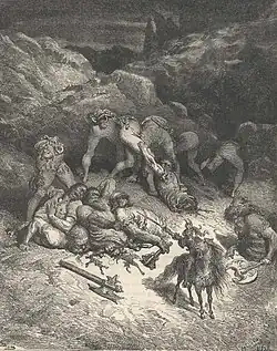 Tendo acabado a carne, os cabreiros deitaram depois bolotas secas sobre as peles, bem como meio queijo seco mais duro que argamassa, tendo o corno de vinho andado em roda viva como alcatruz de nora.