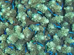 Exemplares escondidos em ramos de corais