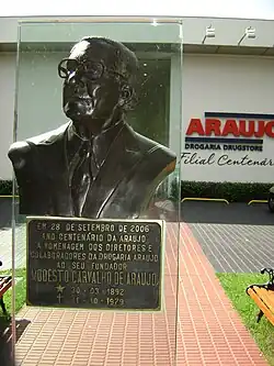 Modesto comprou a farmácia de seus empregadores em 1913, alterando o nome para Drogaria Araujo[6]. Atualmente, a empresa familiar está em sua terceira e quarta gerações. Segundo dados do Sinapro-MG,[7] a drogaria foi a primeira da cidade a implementar o plantão noturno, a primeira do Brasil a implementar os serviços de drive-thru e telemarketing e também pioneira na aplicação do conceito de drugstore.
