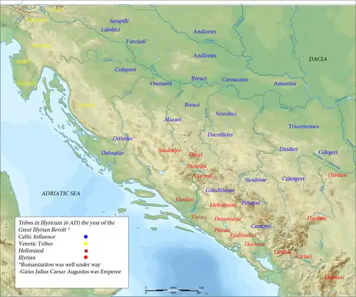 Druso seguiu para Ilírico com imperium maius proconsular,[25] o que lhe garantia poder sobre os governadores provinciais e comandantes militares da região, e lá permaneceu até 20. Como Germânico havia deixado a região do Reno em 16, as tribos germânicas que antes haviam lutado juntas contra os romanos se voltaram umas contra as outras. As duas maiores forças na região, os marcomanos do rei Marobóduo e os queruscos liderados por Armínio, se enfrentaram e, depois de uma batalha inconclusiva, Marobóduo se retirou para o coração de seu reino nas florestas da Boêmia. Antes disto, duas tribos, os sêmnones e os langobardos, desertaram para o lado de Armínio.[26]