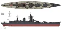 | Armamento | 8 canhões de 330 mm 16 canhões de 130 mm 8 canhões de 37 mm 32 metralhadoras de 13 mm |