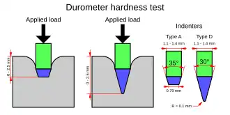 O durômetro Shore é utilizado na medição da dureza. O método consiste em medir a profundidade da impressão deixada no material com a aplicação da carga e é dependente de outros fatores além da dureza, como das propriedades viscoelásticas e da duração do ensaio.