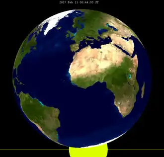 - ↑ F. Espenak. «Penumbral Lunar Eclipse of 2017 February 11» (PDF). NASA Eclipse Website. Consultado em 8 de agosto de 2017
