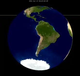 ![]() Região do planeta onde foi visível durante o máximo do eclipse - 4:47 UTC. O norte da Argentina, na América do Sul, obteve a melhor observação do meio do eclipse, de onde foi visível à meia-noite. |
