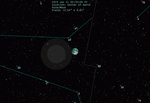 - ↑ F. Espenak. «Total Lunar Eclipse of 2019 Jan 21» (PDF). NASA Eclipse Website. Consultado em 6 de abril de 2016