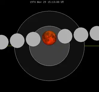 O eclipse lunar de 29 de novembro de 1974 foi um eclipse total, o segundo e último de dois eclipses lunares do ano, e único como total. Teve magnitude umbral de 1,2896 e penumbral de 2,3058. Teve duração de 76 minutos.[1]