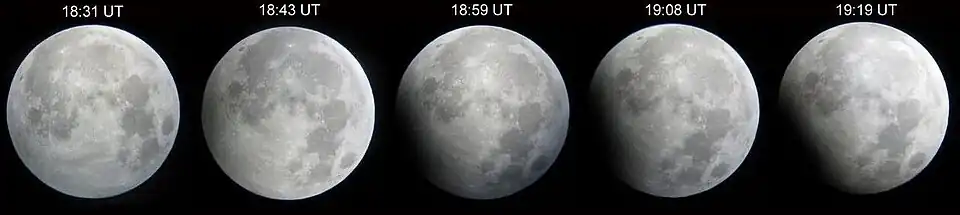 O disco lunar passou pela borda da extremidade norte da sombra da Terra, fazendo com que apenas a porção norte da superfície ficasse escura, no interior da umbra, enquanto o restante da superfície se encontrou na faixa penumbral, perdendo gradualmente o seu brilho à medida que se aproxima da região atingida pelo cone de sombra. Dessa forma, a Lua se apresentou com seu trecho sul "comido" pela sombra terrestre.