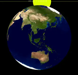 Foi visível na Ásia, Austrália, Nova Zelândia, Oriente Médio, Oceano Índico, boa parte da Europa e da África, centro-oeste do Pacífico e no extremo noroeste da América do Norte.