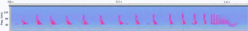 As chamadas de ecolocalização podem ser compostas por dois tipos diferentes de estrutura de frequência: varreduras moduladas em frequência (FM) e tons de frequência constante (CF). Uma chamada específica pode consistir em uma, outra ou ambas as estruturas. Uma varredura FM é um sinal de banda larga – ou seja, contém uma varredura descendente por uma faixa de frequências. Um tom CF é um sinal de banda estreita: o som permanece constante em uma única frequência durante toda a sua duração.[23]