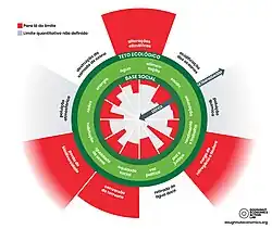 - ↑ a b Raworth, Kate (1 de maio de 2017). «A Doughnut for the Anthropocene: humanity's compass in the 21st century». The Lancet Planetary Health (em inglês). 1 (2): e48–e49. ISSN 2542-5196. PMID 29851576. doi:10.1016/S2542-5196(17)30028-1