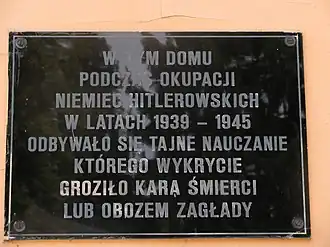 Os professores organizaram uma rede secreta de escolas secundárias, escolas de comércio e cursos especiais de assuntos proibidos, tais como a língua polonesa, história e geografia. Um caso especial foi o segredo talmúdico de escolas organizadas em guetos. Até 1944, havia mais de um milhão de estudantes secretos do ensino médio na Polônia. Pelo menos 18 mil alunos passaram nos exames escolares finais e receberam seus certificados. Isso levou a uma situação bizarra em que os alunos formalmente não-existentes entravam em faculdades formalmente inexistentes. A maioria desses certificados foram emitidos em formulários pré-guerra com as datas forjadas para indicar ou 1938 ou 1939. Estes, foram mais tarde aceitos pelas universidades polonesas pós-guerra.