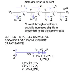 A corrente de carga da linha capacitiva produz uma queda de tensão na indutância da linha que está em fase com a tensão do final do envio, assumindo uma resistência de linha desprezível. Portanto, tanto a indutância quanto a capacitância da linha são responsáveis por esse fenômeno. Isso pode ser analisado considerando a linha como uma linha de transmissão onde a impedância da fonte é menor que a impedância da carga (não terminada). O efeito é semelhante a uma versão eletricamente curta do transformador de impedância de quarto de onda, mas com menor transformação de tensão.