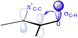 Hiperconjugação é a interação estabilizadora que resulta da interação dos elétrons em uma ligação sigma (geralmente C-H ou C-C) com um orbital π adjacente, vazio (ou parcialmente preenchido), não-ligado (vazio ou parcialmente preenchido), ou um π orbital antiligante, ou um orbital sigma antiligante, resultando em um orbital molecular estendido que aumenta a estabilidade do sistema.[1] A hiperconjugação pode ser usada para explicar fenômenos como o efeito gauche e efeito anomérico.