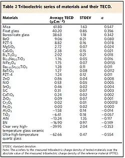 - ↑ Zou H, Zhang Y, Guo L, Wang P, He X, Dai G, et al. (2019). «Quantifying the triboelectric series». Nature Communications. 10 (1): 1427. Bibcode:2019NatCo..10.1427Z. PMC 6441076