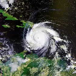 O furacão adentrou o Caribe através do canal de Santa Lúcia, entre a ilha de mesmo nome e Martinica na manhã de 17 de agosto como um furacão de categoria 2 na Escala de furacões de Saffir-Simpson, com ventos de 165 km/h.[14]