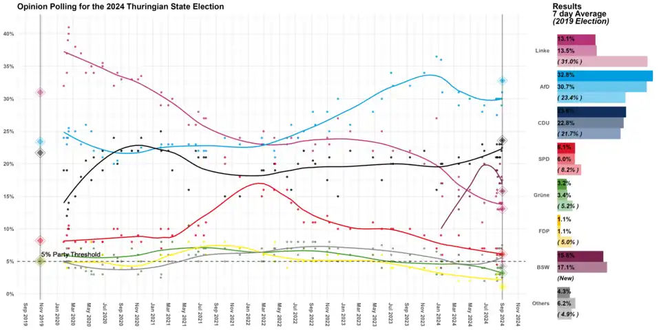 - ↑ mdr.de. «Landtagswahl in Thüringen 2024: Ramelow schlägt Termin 1. September vor | MDR.DE». www.mdr.de (em alemão). Consultado em 13 de agosto de 2024
