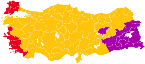Todos os 550 assentos na Grande Assembleia Nacional da Turquia 276 assentos necessários para maioria | ||||||||||||||||||||||||||