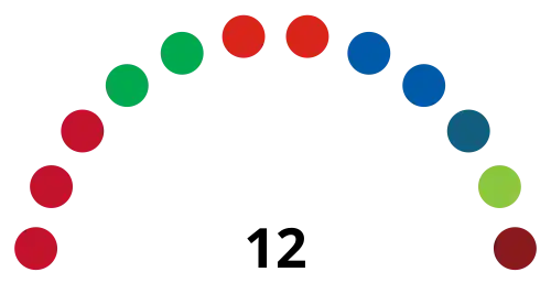 | Nº | Partido | Votos populares | Assentos | ± | |