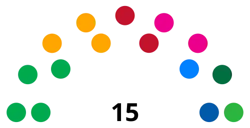 | Nº | Partido | Votos populares | Assentos | ± | |