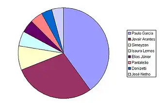 - ↑ a b Apuração 1° Turno - GOIÂNIA (vereadores). Terra. 7 de outubro de 2012. Página acessada em 7 de outubro de 2012