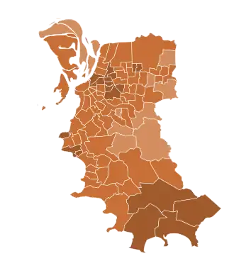 | Resultado da eleição por bairro no 1º turno (92) José Fortunati (79) 50-59%