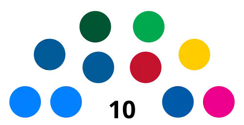 | Nº | Partido | Votos populares | Assentos | ± | |