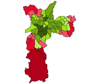 ![]() Candidato mais votado por zona eleitoral no 1º turno (58): Gilberto Kassab (34)