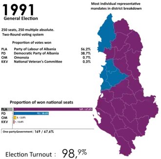 - ↑ «ALBANIA: parliamentary elections Kuvendi Popullor, 1991». archive.ipu.org. Consultado em 29 de maio de 2022