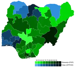 | Candidato | Olusegun Obasanjo | Olu Falae | ||