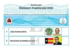 A eleição presidencial timorense de 2022 foi realizada em duas voltas, em 19 de março e 19 de abril.[1] Foi a 5ª eleição presidencial do país após a independência em 2002.