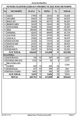 - ↑ «Timor-Leste organiza maiores eleições presidenciais de sempre». RFI. 18 de março de 2022. Consultado em 22 de março de 2022