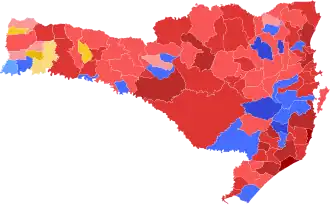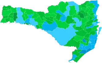 | Araranguá | 3128 | 50,41% | 2869 | 46,24% | 208 | 3,35% |