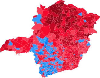 Dilma venceu com ampla vantagem em praticamente todas as cidades da Mesorregião do Norte de Minas, com exceção apenas da cidade de Taiobeiras, onde Serra teve mais votos. O candidato do PSDB se saiu melhor em cidades da Mesorregião do Sul e Sudoeste de Minas, enquanto Dilma teve mais votos em grande parte dos municípios da Zona da Mata e Vale do Rio Doce. No Triângulo Mineiro, Dilma ganhou com ampla vantagem nos municípios da divisa com o Mato Grosso, Goiás e norte de São Paulo, além de em cidades mais ao centro, como Uberlândia, enquanto Serra venceu em algumas cidades da microrregião de Patos de Minas e microrregião de Araxá. Na capital Belo Horizonte, terra natal de Dilma, Serra recebeu 50,39% dos votos, enquanto a candidata do PT teve 49,61%.[6]