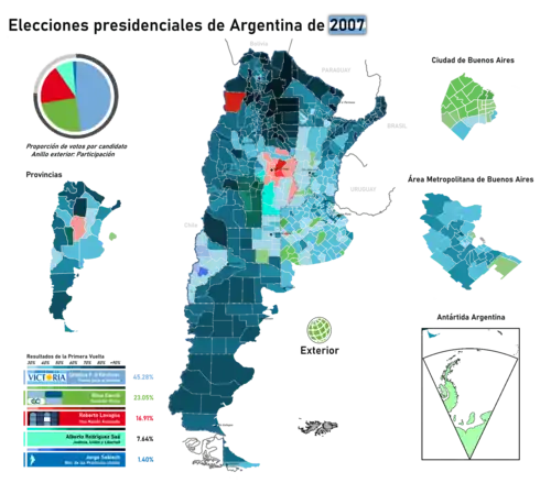 Cristina Kirchner era esposa do então presidente Néstor Kirchner. Sua vitória garantiu a continuidade do governo da coligação governista Frente para a Vitória. O período ficou conhecido com Kirchnerismo.