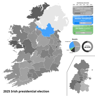 A eleição presidencial na Irlanda em 2025 foi realizada em 24 de outubro a fim de determinar o presidente da Irlanda para os sete anos decorrentes após a eleição.[1][2] Duas candidatas, Catherine Connolly e Heather Humphreys, disputaram a presidência do país. A eleição resultou numa vitória de Connolly, candidata independente de esquerda, por uma grande margem de votos. Connolly, ao assumir, tornar-se-á a 10.ª presidente da Irlanda, sendo a terceira mulher a ocupar o cargo.[3]