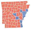 No Arkansas, o candidato vitorioso foi o republicano John McCain que recebeu 19 % de votos a mais que o segundo colocado no estado, Barack Obama, do Partido Democrata.