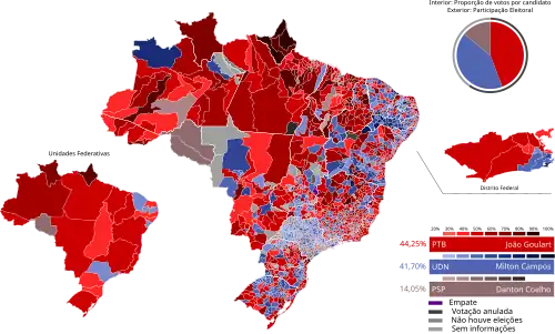 João Goulart (PSD/PTB/PR/PTN/PST/PRT) 3.591.409 44,25%