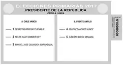- ↑ «Servel definió en sorteo el orden de candidatos presidenciales en la papeleta de noviembre». BioBioChile