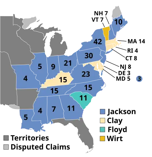 (b)66.706 eleitores da Pensilvânia votou a favor da chapa União, o que representou tanto Clay e Wirt. Estes eleitores têm sido atribuídos a Wirt e não Clay.
