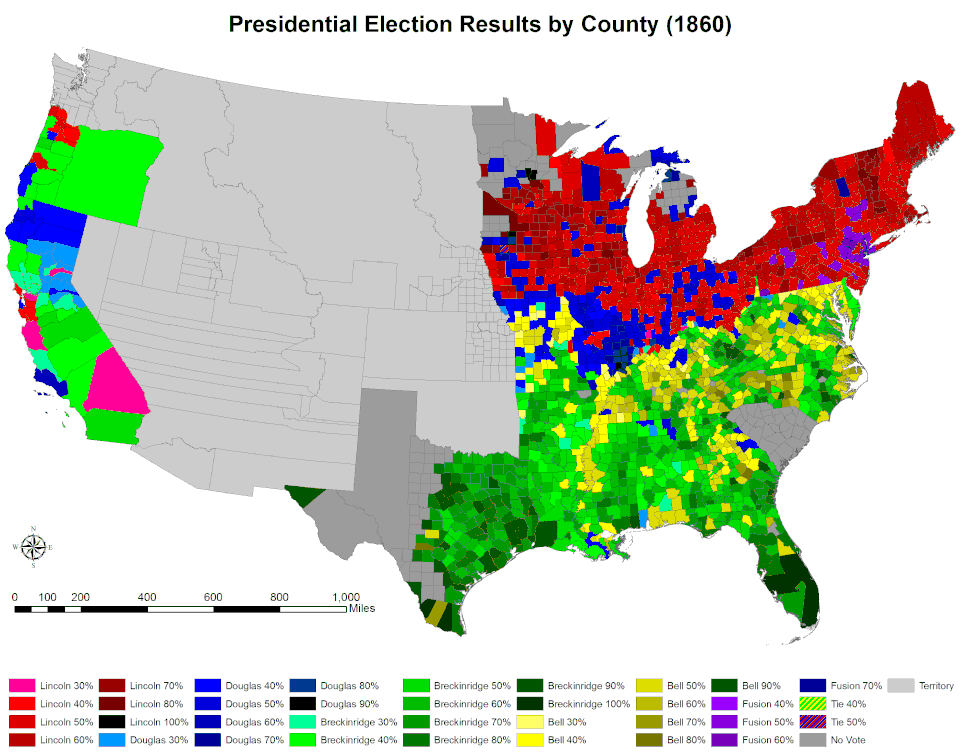 - (em inglês) 1860 popular vote by counties
