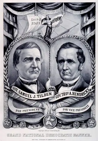 | Samuel J. Tilden | Partido Democrata | Nova Iorque | 4.288.546 | 50,97% | 184 | 49,9% | Thomas A. Hendricks | Ohio | 184 |