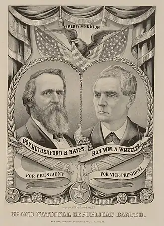 | Rutherford B. Hayes | Partido Republicano | Ohio | 4.034.311 | 47,95% | 185 | 50,1% | William A. Wheeler | Nova Iorque | 185 |